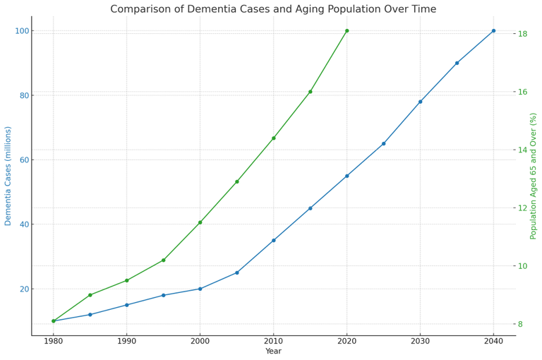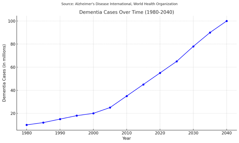 A specific challenge has grown within our society due to the influx of Dementia diagnoses over the past four decades. Currently, we have seen a 450% increase in identification since the 1980s, with it expected to double from recent to figures to those of 2040.