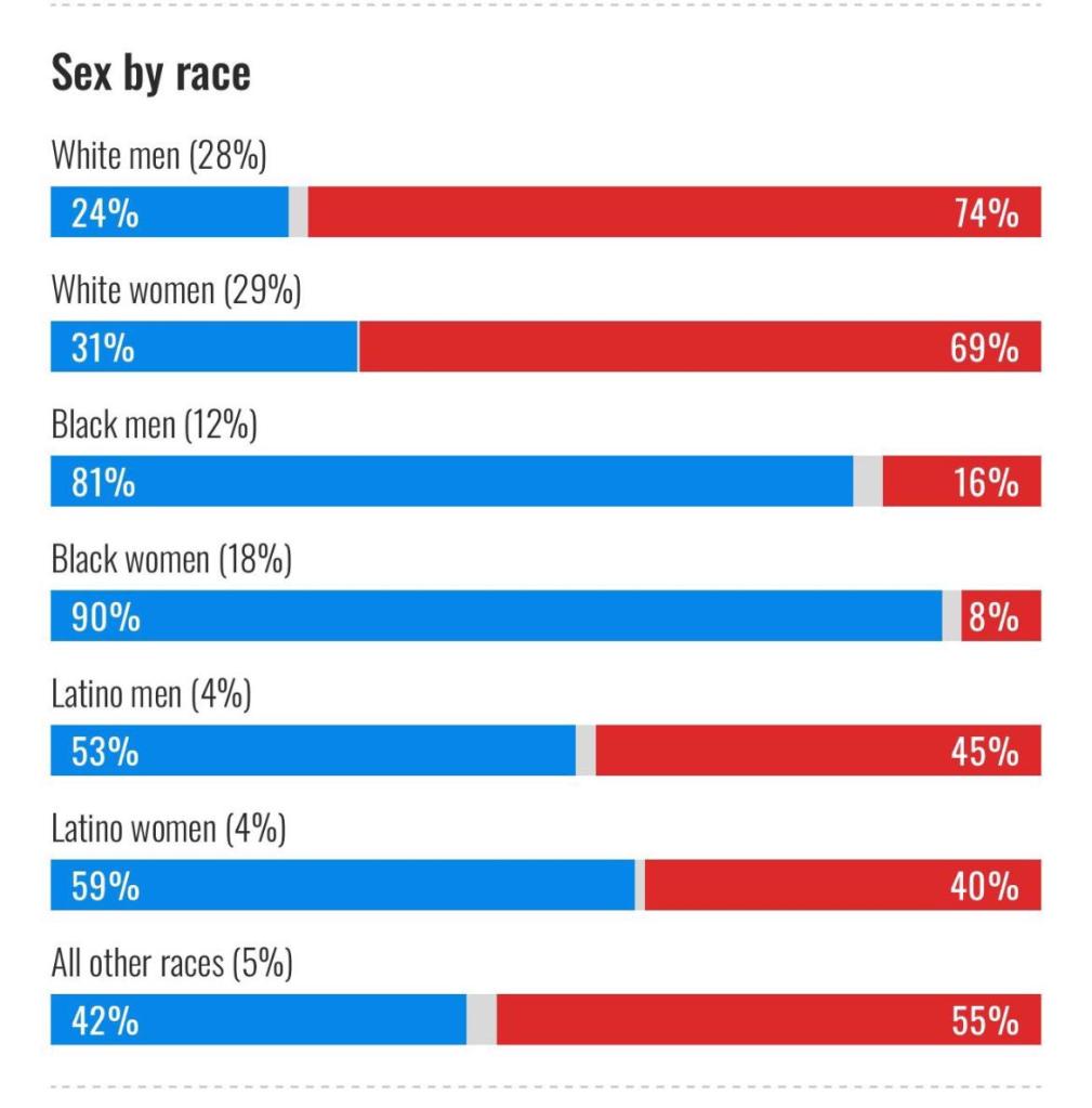 Moreover, instead of going along with the changes, and encouraging freedom of expression, the legacy media across the world started demonising Trump and his supporters, leading to further polarisation. However, what they did not account for, is the deserters. This 2024 election, as of writing, seems to have a similar turnout to previous ones. However, the turnout for the Democrats was far worse than in 2020, and the Republicans faired better. This means that the ex-democrats were the ones to win this 2024 Presidential Election. But even more interestingly, the biggest swing was in white women. Across the whole country, white women swung to the Republicans, winning the turnout 69%-31%.